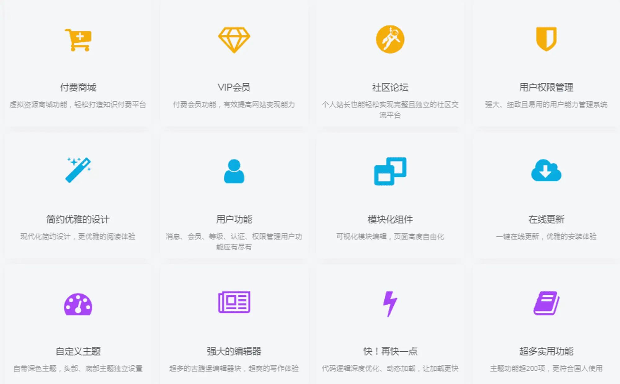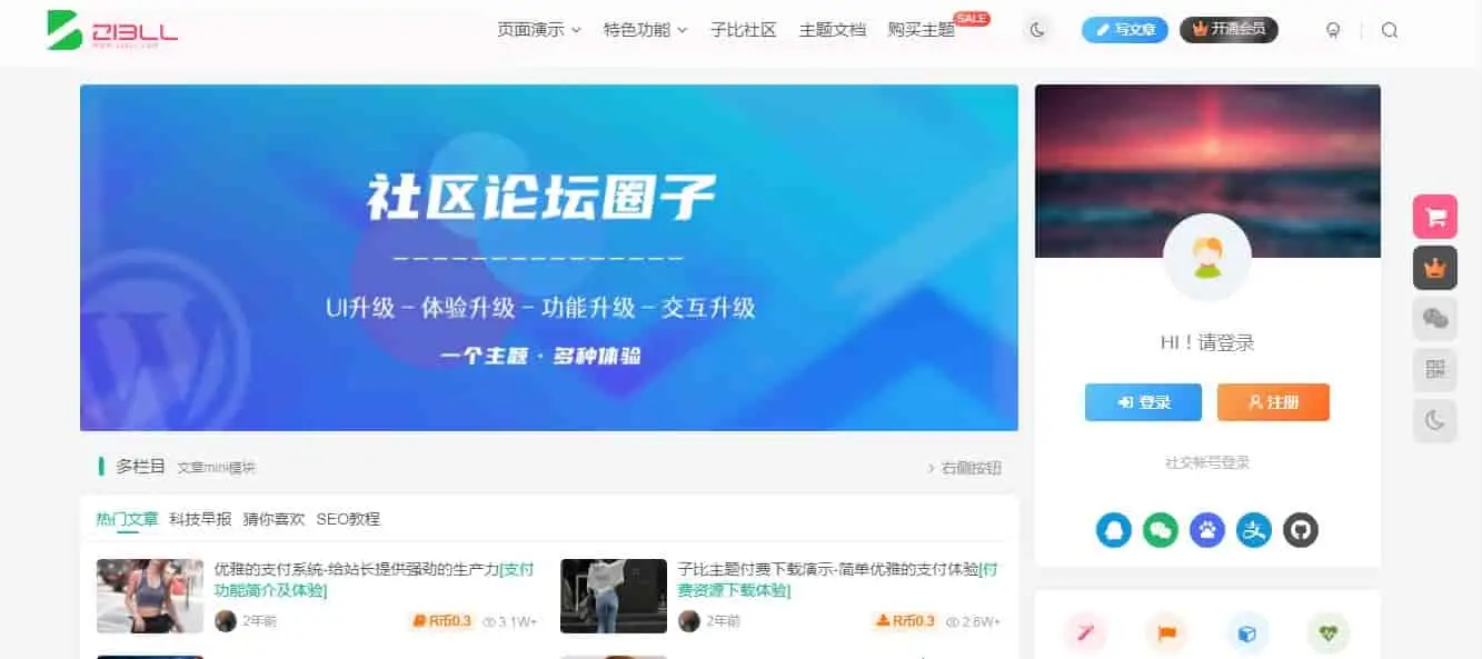 主题介绍:专为阅读类网站开发,设计简约优雅、功能全面。UI界面模块化、多种布局、多种显示效果可选择,高度自由化,更容易搭配出自己喜欢的网站。支持付费阅读,付费下载,付费视频的支付功能和完善用户VIP会员系统加上强大的模块化编辑器工具,为站长提供有力的生产力。整体的开发理念都是围绕着阅读体验,减少花里胡哨的无用功能,把核心都集中在内容上。页面的布局、间距、功能都精心设计,只为让页面浏览更加自然,让用户更加易于阅读,让作者更加易于写作。