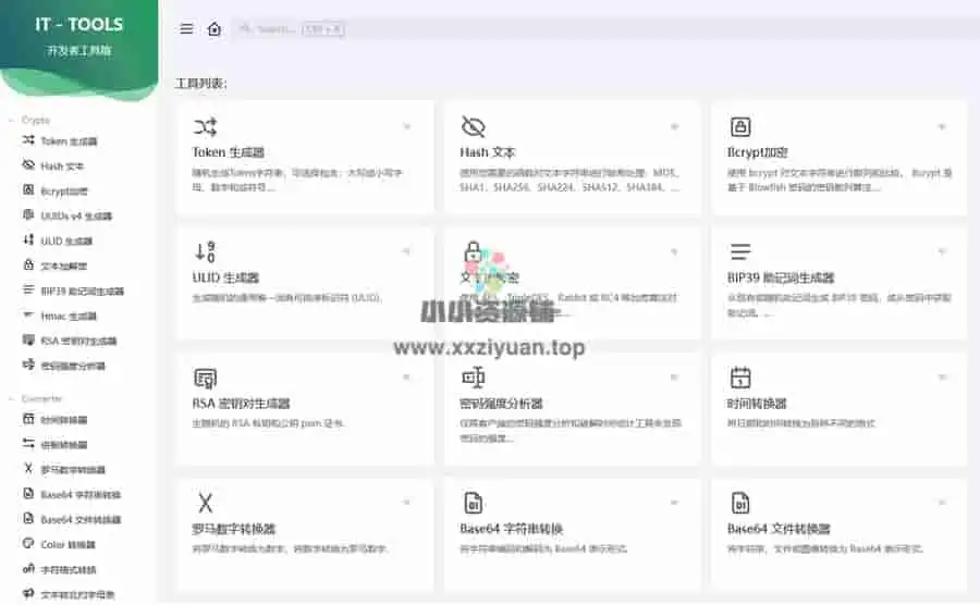 IT Tools工具箱开发人员在线工具集合系统源码,为开发人员和IT工作人员提供了极其实用的工具。目前,收录的工具类型包括加密货币、转换器、网络工具、图片视频工具、数学工具等等。有需要的可以下载搭建学习