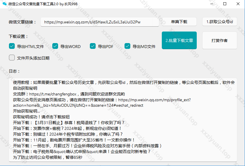 一款简单易用公众号文章下载小工具,测试win10 系统。