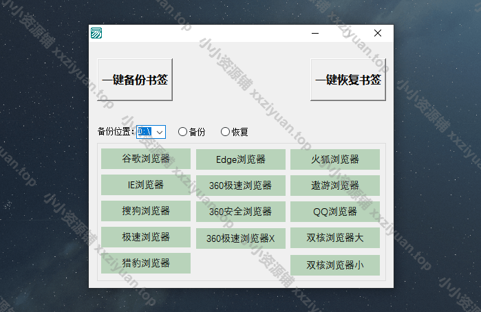 书签备份还原工具,易语言编写。支持众多主流浏览器