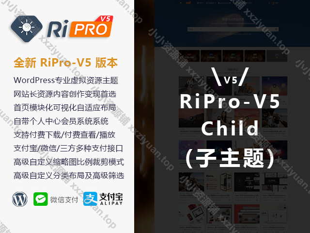适用于WordPress的RiPro-v5子主题、VAN子主题、RiPro-v5美化、子主题、免登录购买、会员系统、付费下载系统、付费查看系统、支付宝支付、微信支付、自适应。版本包含了1.3-1.5