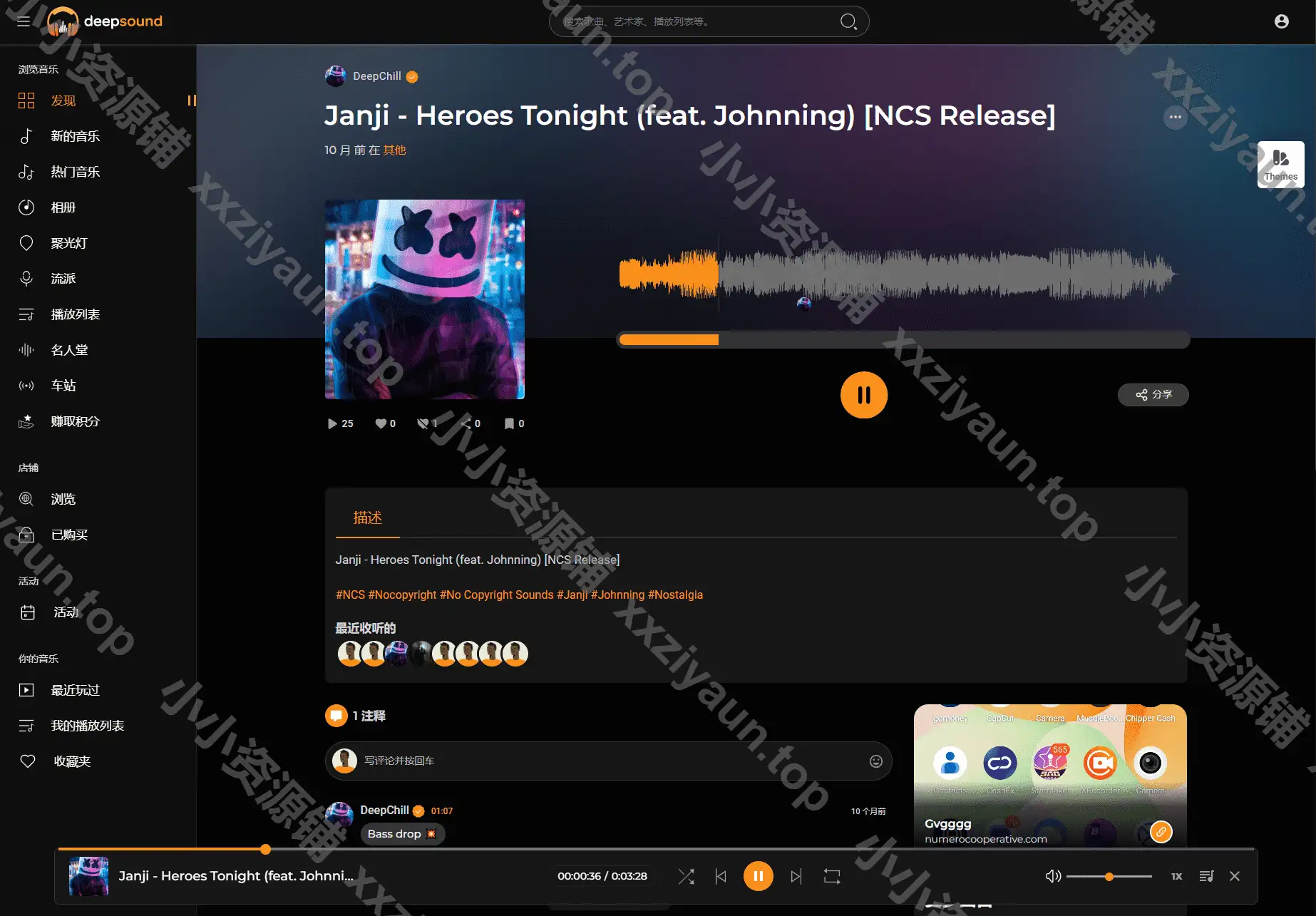 一款在线音乐网站模板,可做音乐社区,支持多语言,此版本去除限制,有兴趣的可以搭建测试