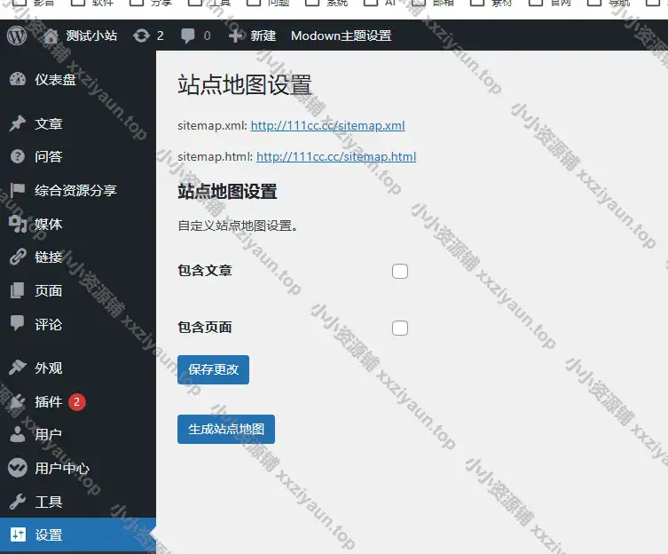 为WordPress网站生成站点地图,可勾选文章和页面,支持生成xml和html两种格式。生成的地图可以提交到搜索引擎,提高网站收录。新生成的地图文件在网站根目录下。