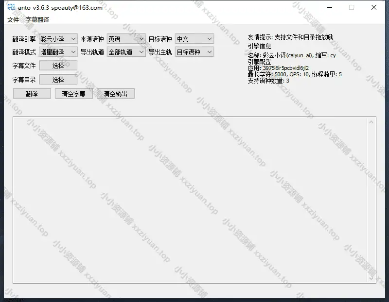 ANTO是一款srt字幕文件翻译工具 开箱即用, Windows专用,内置阿里云、百度智能云、百度翻译、彩云翻译、Deepl、DeepL PRO、微软翻译、谷歌云、OpenAI、有道智云、腾讯云、火山引擎等等翻译引擎,使用简单,选择翻译引擎、选择srt字幕文件,配置字幕保存目录,点击翻译即可,小白也适用。