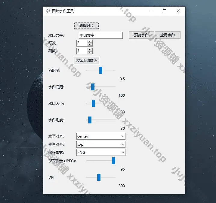图片水印工具,在本地给图片添加文字水印。小站还有其他添加水印工具,可自行搜索
