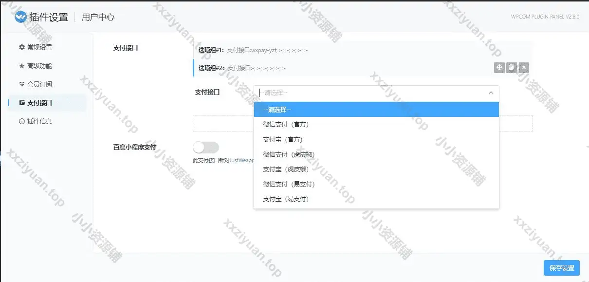 支持微信和支付宝官方支付接口以及虎皮椒、易支付第三方支付,还可开启我的钱包实现代金券和线下转账充值支付。