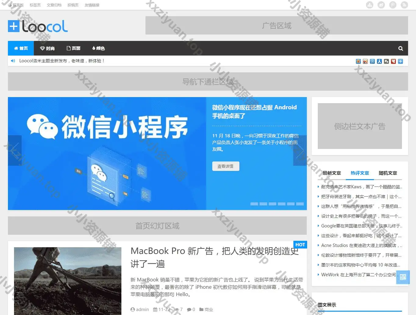 Loocol主题是基于loocol的一款双栏主题,简约风格。