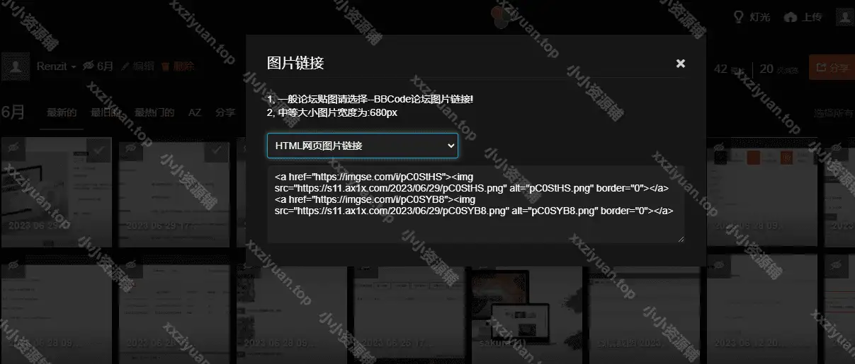 首先,将图片批量上传到图床站点。图床可以是自建的,也可以是其他免费图床。一般上传后,会自动生成图片分享地址,此时可以批量复制。注意这里要将地址转为html代码形式,可以查看以下图示。