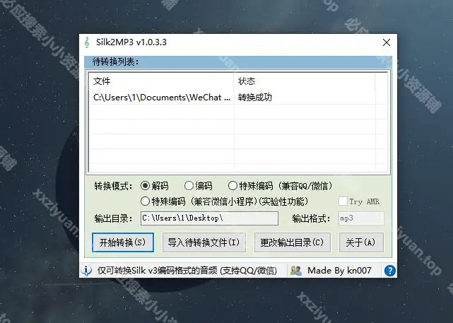 微信PC端语音文件的格式为silk,是不能够用其他工具打开的。此工具可以将silk转为MP3,变为可读,非常方便。