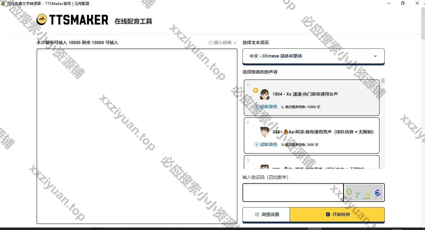 TTSMaker 马克配音是一款免费的文本转语音工具,提供语音合成服务,支持多种语言,包括中文、英语、日语、韩语、法语、德语、西班牙语、阿拉伯语等50多种语言,以及超过300种语音风格。您可以用它制作视频配音,也可用于有声书朗读,或下载音频文件用于商业用途(完全免费)。作为一款优秀的AI配音工具,TTSMaker可以轻松地将文本转换为语音。软件的界面非常简洁,一共有66个免费的声音可以选择。