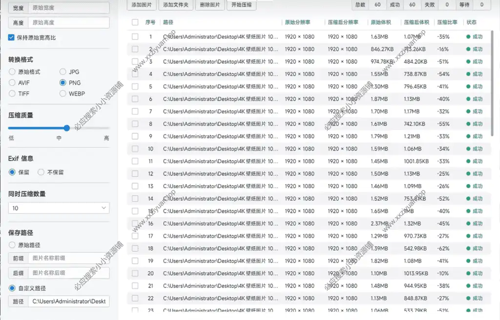 极速图片压缩器是一款完全开源免费的图片压缩工具,压缩速度很快,压缩后画质也还好,同时支持转换图片格式,可以一次性选择多个文件夹中的所有符合要求的图片进行批量压缩。支持压缩单张体积最大可达 10GB 的超大图片。
