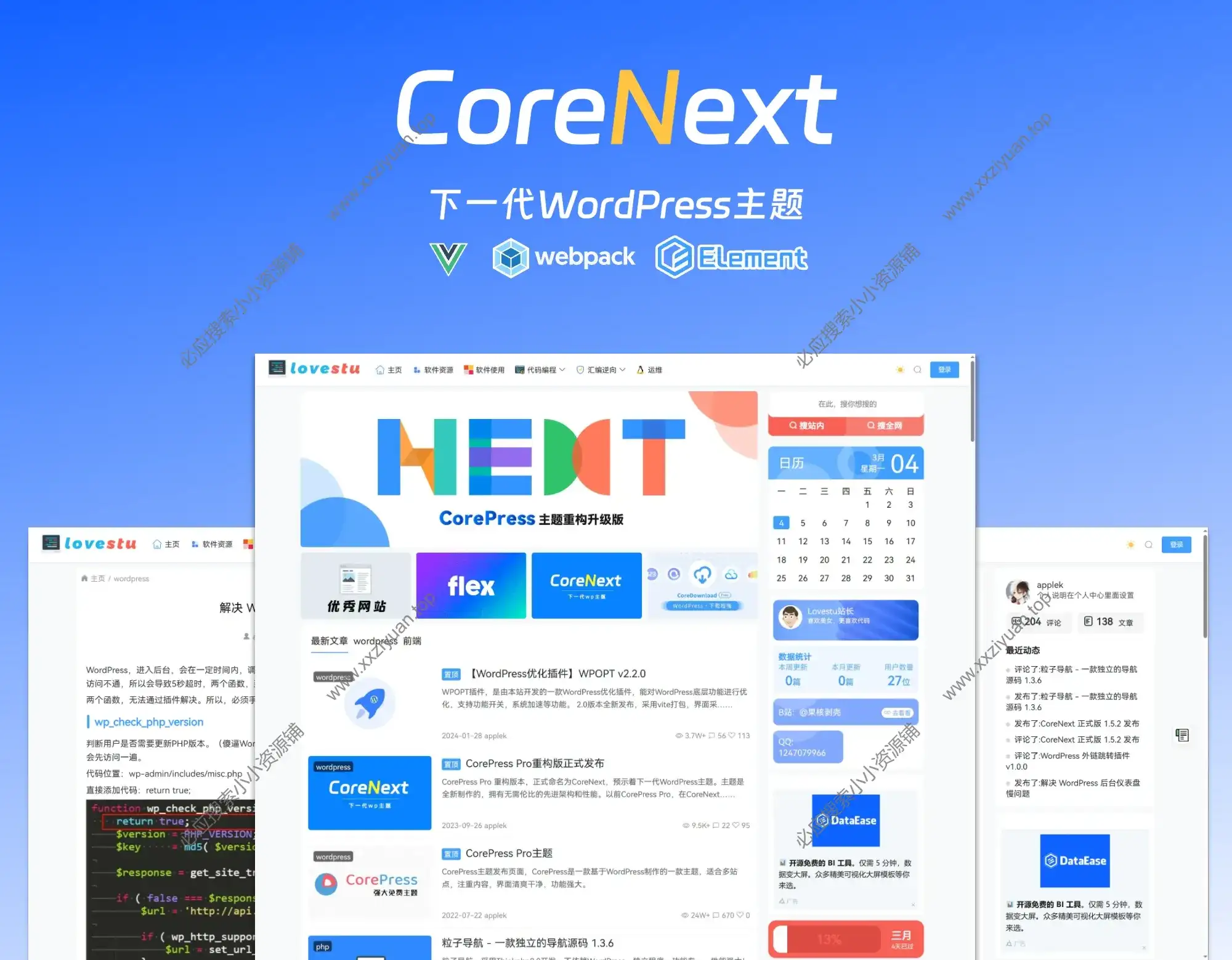 CoreNext一款高性能WordPress主题,简约美观,功能多。主题结合了知名框架Vue和element库,并且使用前端工程化webpack打包,将多个文件打包成一个文件,大幅度提升加载性能。保证主题流畅的同时,SEO功能同样不丢失。目录结构,有别于传统主题,大幅度精简文件,统一入口。外保外观和功能的情况下,主题压缩后体积仅1M,有着无与伦比的优势,就算是虚拟机,也能非常流畅的运行。