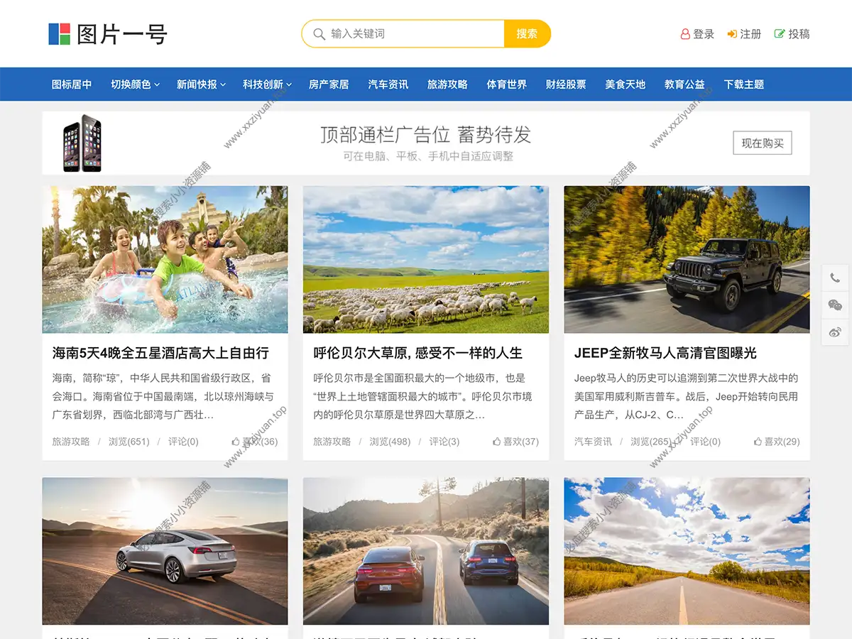 图片一号WordPress主题,适用于各类型图片网站、资讯网站、和个人博客。