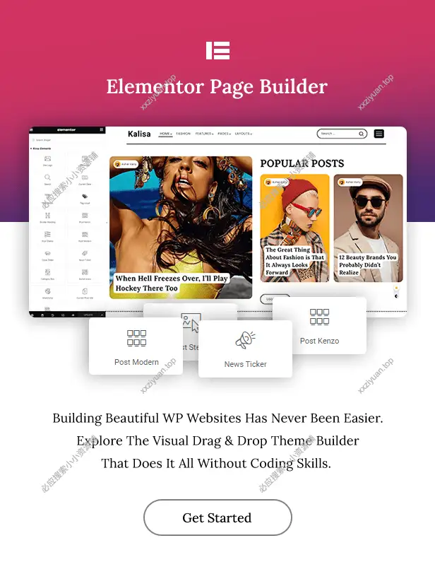 - 拖放 Elementor 页面构建器