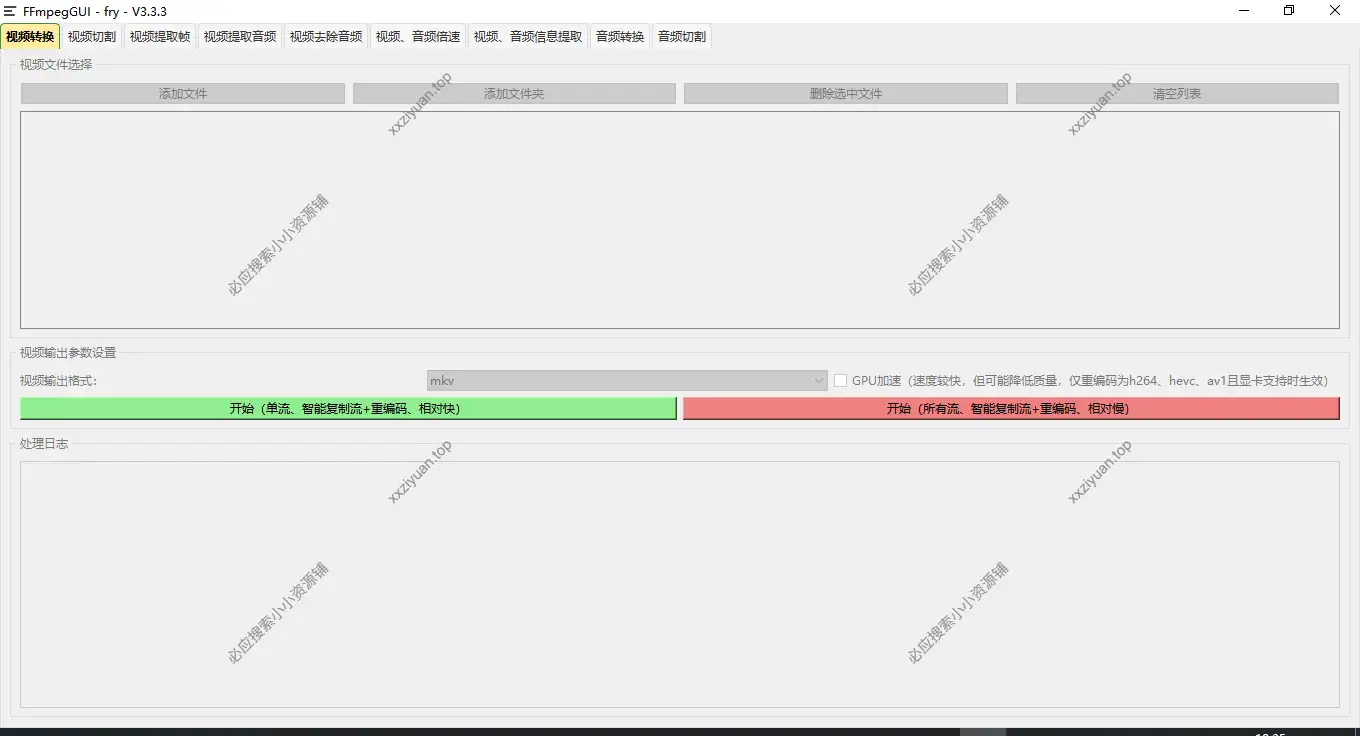 FFmpegGUI 是一款简单易用的音视频处理小工具。主要功能:视频转换(GPU加速)、音频转换、视音字分离、视音字流信息、视频提取帧、音视频倍速(GPU加速)、视频切割(GPU加速)、音频切割。