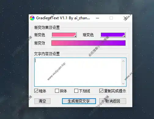 此工具为文字添加一个颜色的渐变效果,小巧易用。工具是比较小众的,有需要的可以下载。