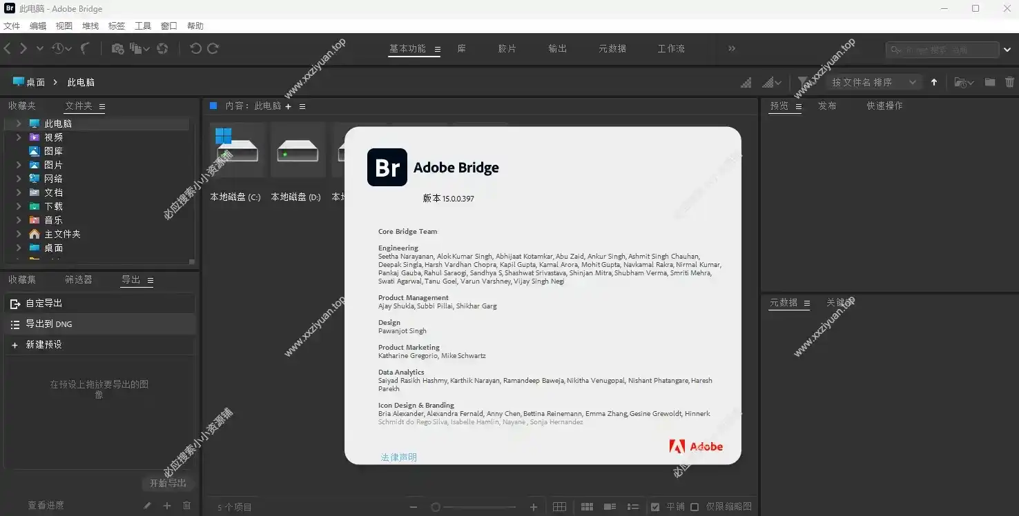 Adobe Bridge(简称Br)作为Adobe Creative Cloud套件中不可或缺的数字资产管理工具,自问世以来便以其强大的功能和高效的工作流程赢得了广大设计师、摄影师和创意工作者的青睐。随着Adobe Bridge 2025的正式发布,这款软件再次以一系列创新特性和性能提升,为用户带来了前所未有的数字资产管理体验。Adobe Bridge 2025以其强大的数字资产管理能力、高效的批量处理功能、与Adobe Creative Cloud的无缝集成、创新的AI辅助工具、丰富的元数据编辑与管理功能、自定义工作区与快捷键以及广泛的文件格式支持等特点再次巩固了其在数字资产管理领域的领先地位。这款软件不仅为专业设计师、摄影师和创意工作者提供了高效便捷的管理工具还为广大用户带来了无限可能的创意空间。