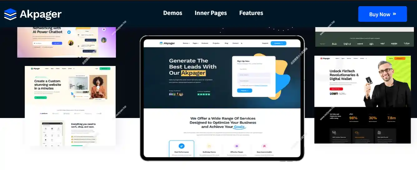 Akpager 拥有所有必要的构建块和预构建组件,允许用户在没有高级编程知识的情况下创建出色的布局。 只需单击一下,这些演示即可设置 5-10 分钟。
