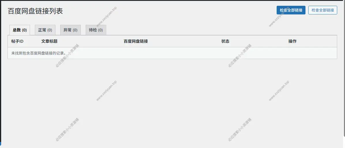 专为WordPress子比主题设计,在WordPress后台列出所有包含百度网盘链接的文章及其标题和链接,支持链接检查和替换。极大方便了子比站长资源链接的管理。