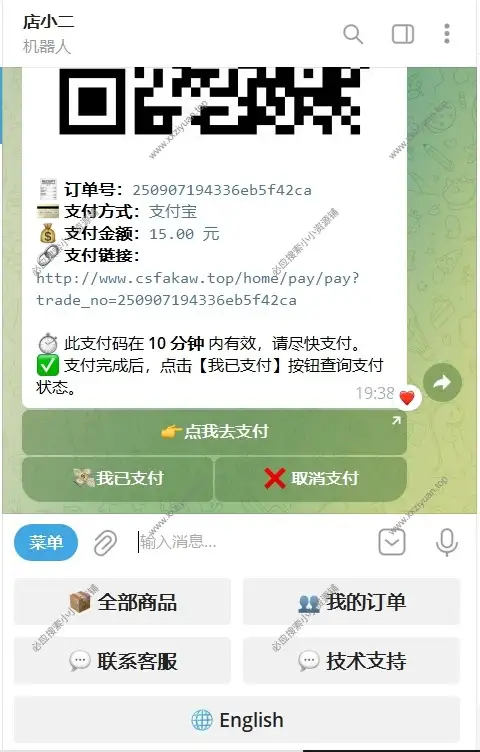 一个用于TG在线发卡的机器人系统,可以用于发卡、虚拟商品的销售。支持中英双语言。有喜欢的可以搭建玩玩,小编未测试。