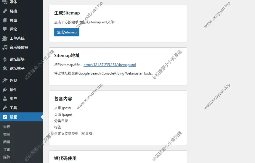 将插件上传到宝塔或者WP后台都可以,然后到:WP后台–>>设置–>>子比Sitemap自己生成,然后我们去新建页面/文章,这边推荐页面,很方便就看到地图了,然后用短代码实现:[zibll_sitemap]