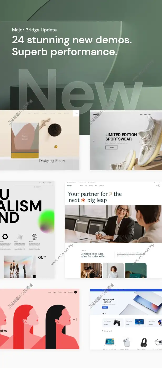 630+ 独特的演示 – 无论您是在寻找博客、商业网站,还是像宠物店的在线商店这样具体的东西,您都可以在我们设备齐全的演示中找到您需要的东西。易于导入且高度可定制,我们创建了桥梁演示,让您的生活更轻松。