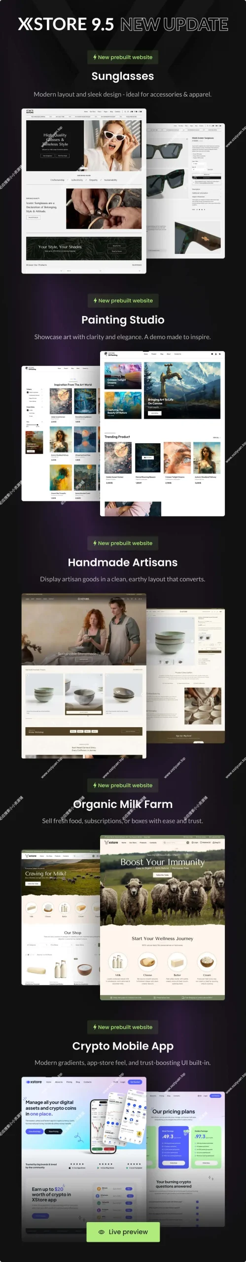XStore 是您建立成功的在线商店的优质一体化解决方案,无论您的利基市场如何 – 电子产品、电子商务、多供应商X 市场、时尚、woocommerce、汽车、室内装饰和家具、食品、书籍、医疗、珠宝、宠物店、美容、婴儿、自行车、杂货店、博客、有机、鞋子、商业、woo、minimal、sport、jewellery、tools、restaurant、nicche、cosmetics、wine、art、portfolio、auto、watch、flower、game、gym、 儿童、酒店、代理、咖啡、健康、水疗、服装、音乐、婚礼、水管工、SEO 代理、汽车租赁、企业、营销机构或介于两者之间的任何机构。通过 140+ 令人惊叹的、可随时导入的演示,在几分钟内让您的商店上线 – 无需编码或技术技能。